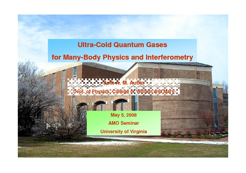 Physics At The University Of Virginia All Atomic Physics Seminars